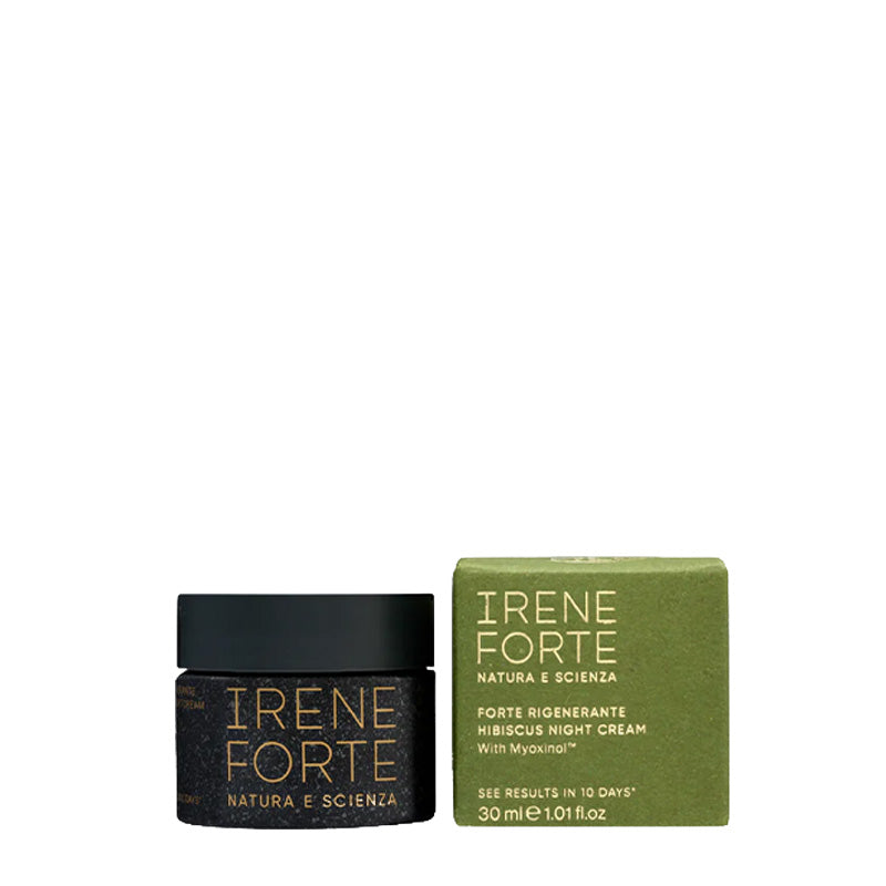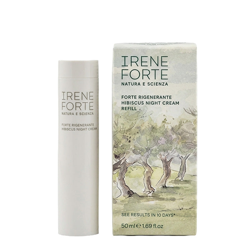 Irene Forte Skincare developed the Hibiscus Night Cream, an anti-aging night cream that evens and firms the skin by replenishing it with moisture and nutrients. A unique combination of botanical peptides from Hibiscus and Green Pea help provide the skin with a smoothing effect while minimizing the appearance of fine lines and wrinkles. Hyaluronic acid and antioxidant-rich olive oil fractions, naturally rich in squalene, nourish and protect the skin. They work in harmony with the body's natural circadian, biological rhythm and help reduce the effects of nighttime moisture loss and strengthen the skin's moisture barrier. Laboratory tests have proven to fight free radicals.