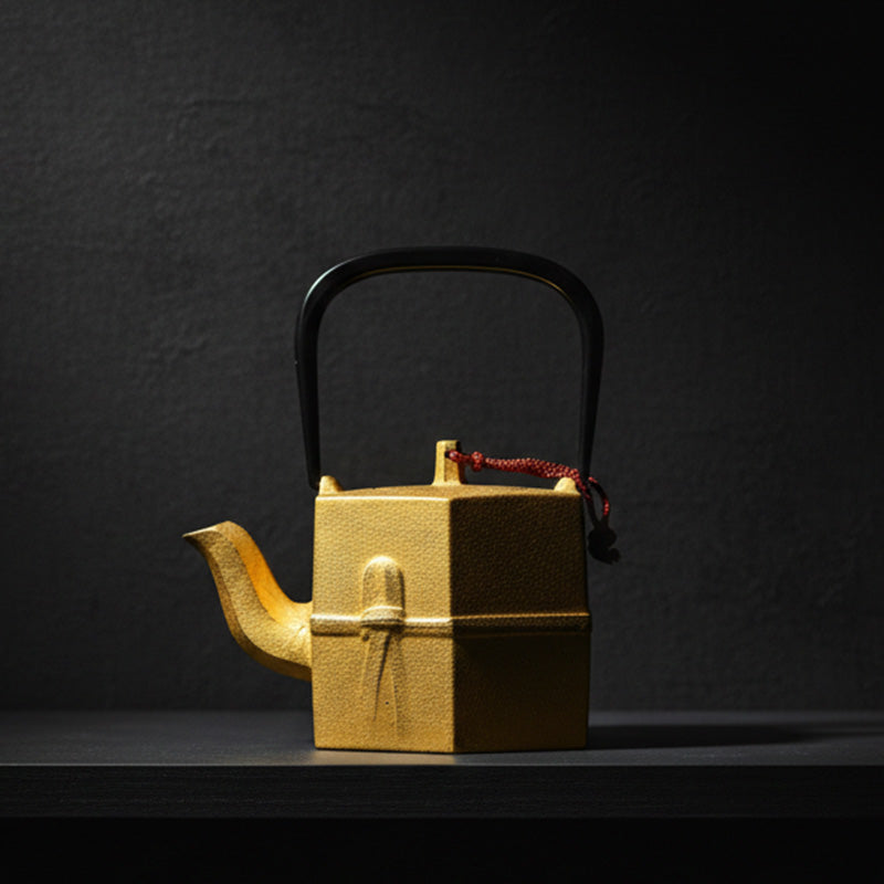 Gietijzeren theepot in iconisch geel.