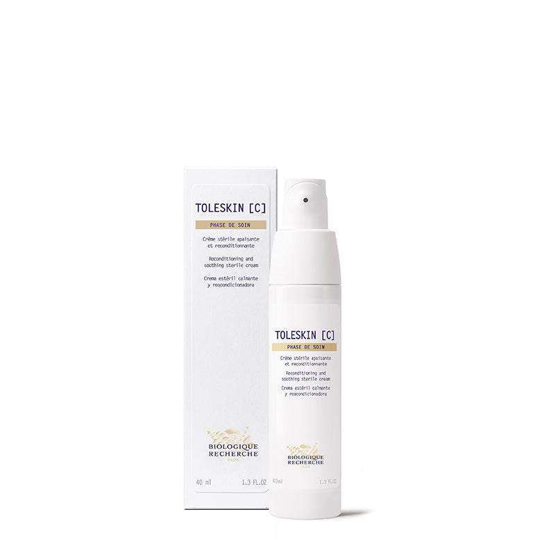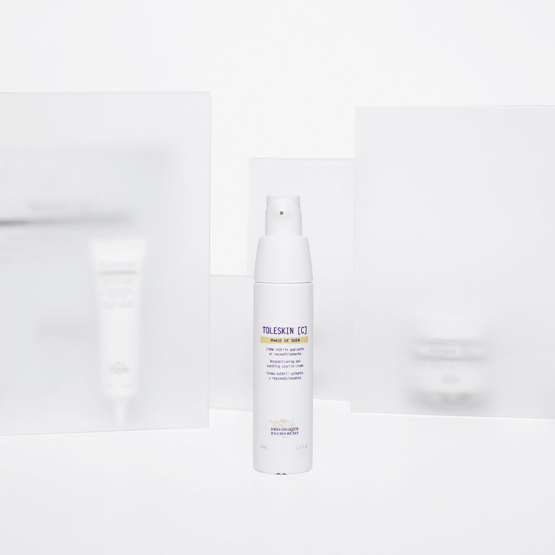 Toleskin C de Biologique Recherche est spécialement formulé pour les peaux les plus sensibles, qui réagissent rapidement aux agressions extérieures. Sa formule contribue à apaiser les démangeaisons, les rougeurs et les irritations, tout en renforçant la barrière cutanée et en restaurant l'équilibre naturel du microbiome cutané. La peau est ainsi mieux protégée contre les allergènes et les agents extérieurs nocifs, pour un confort visiblement accru.